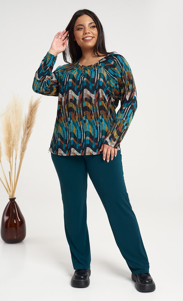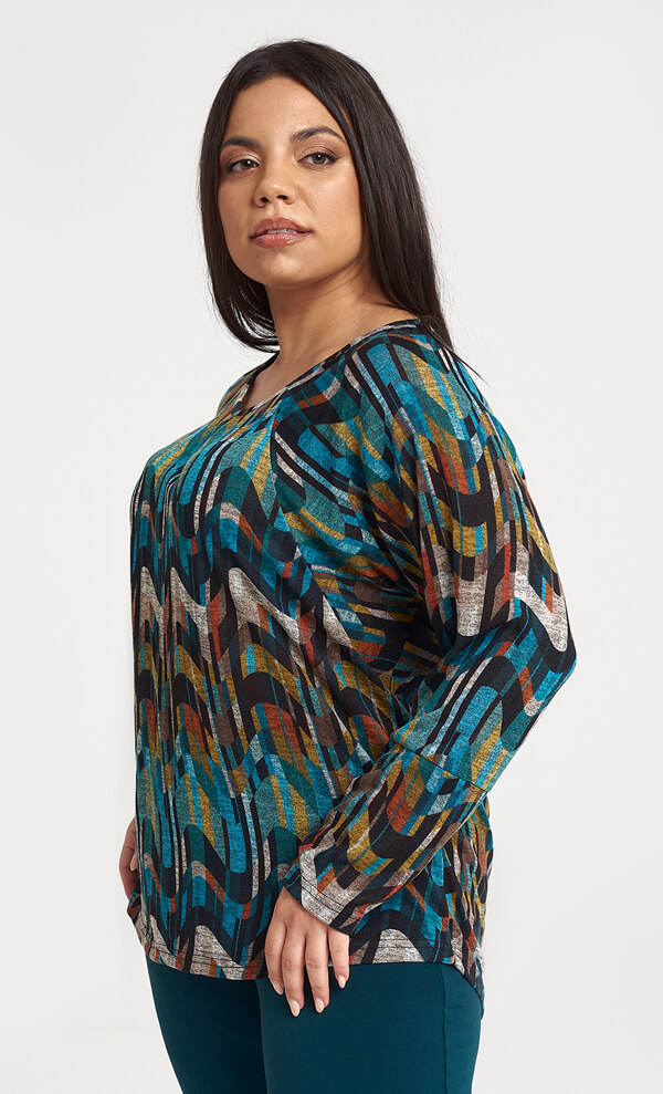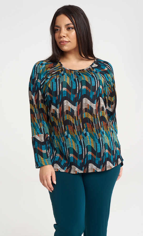 Μακρυμάνικη μπλούζα με χρωματιστό Pattern σε ίσια στενή γραμμή. Ένα ρομαντικό και κομψό κομμάτι, που είναι η απόλυτη επιλογή για το γραφείο, την πρωινή και απογευματινή σας ή έξοδο. WΕLCOME TO OUR PLUS SIZE WORLD #BeautyInandOut