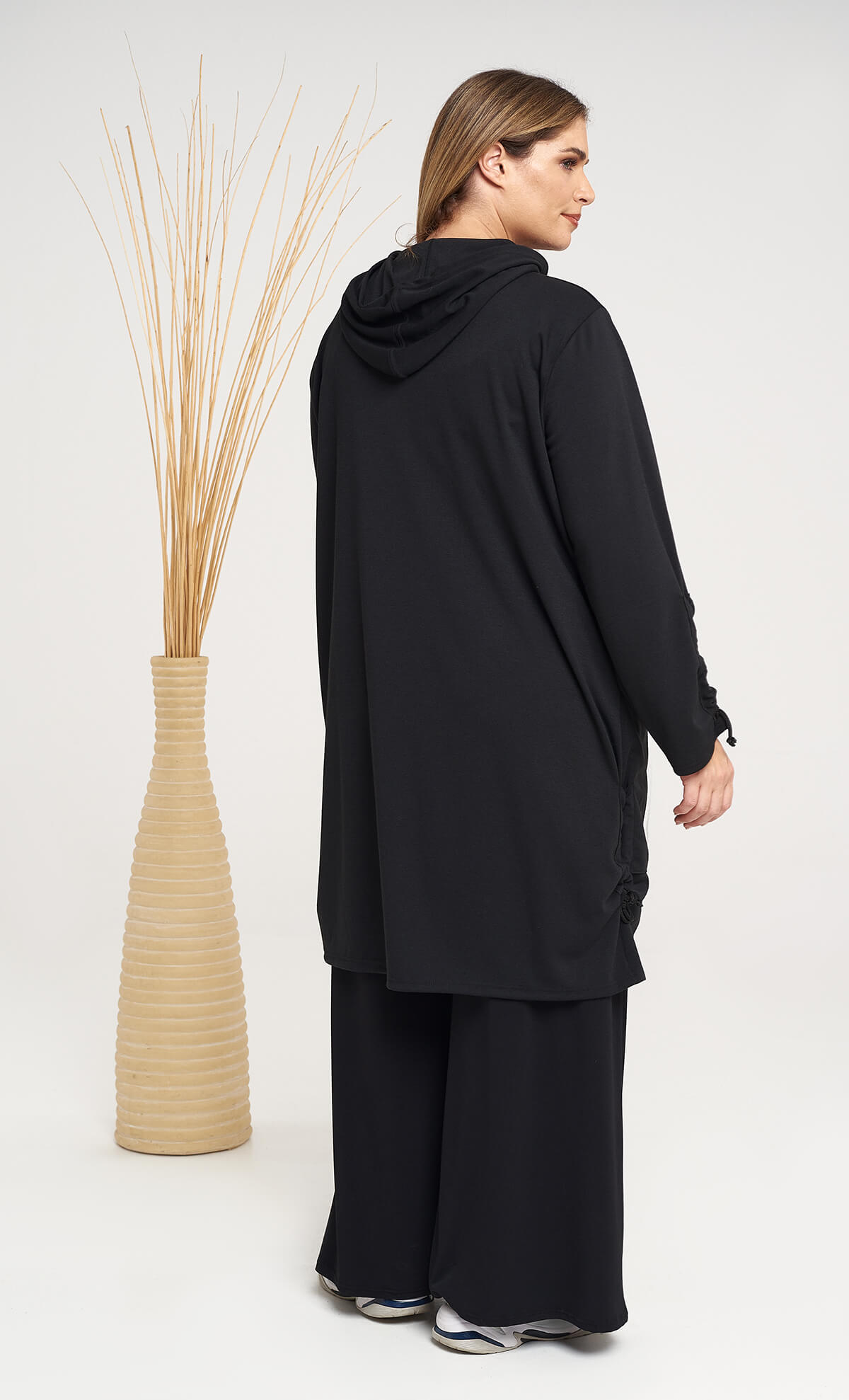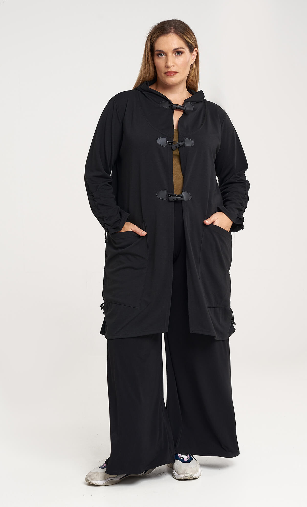Μαύρη ζακέτα με κουκούλα στιλ μοντγκόμερι