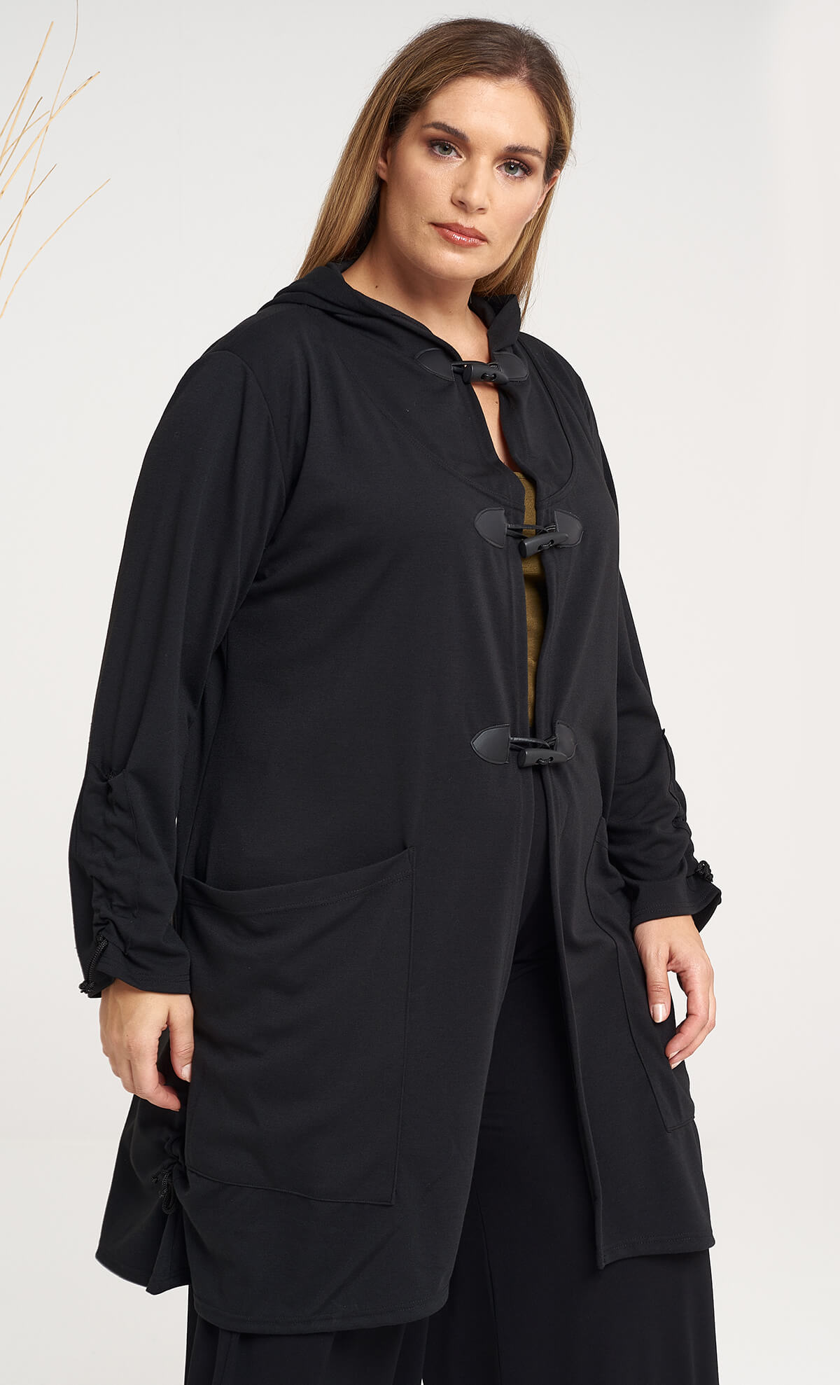 Μαύρη ζακέτα με κουκούλα σε στιλ μοντγκόμερι