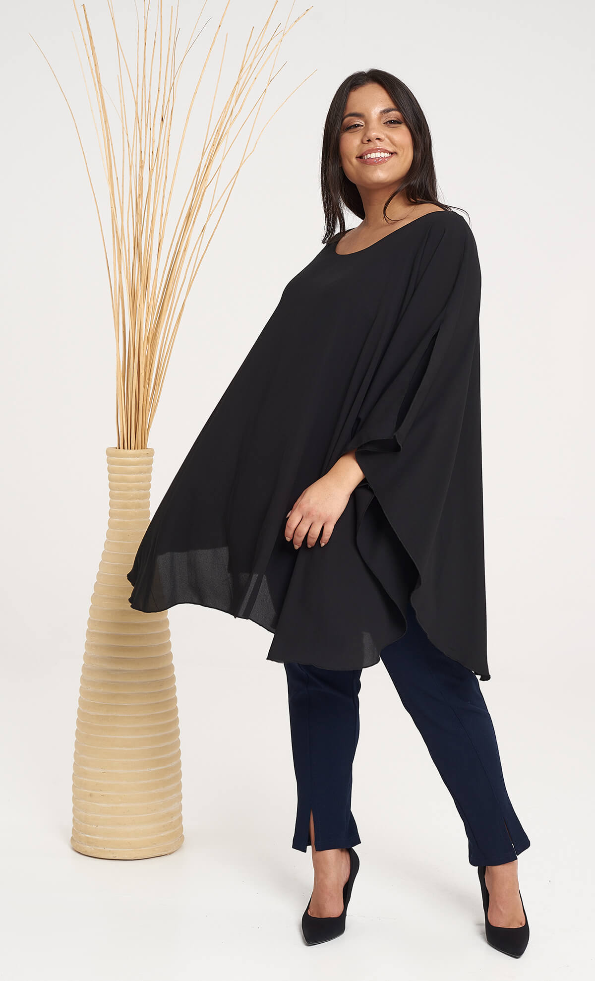 Μαύρο καφτάνι από ζορζέτα με εσωτερική ενίσχυση