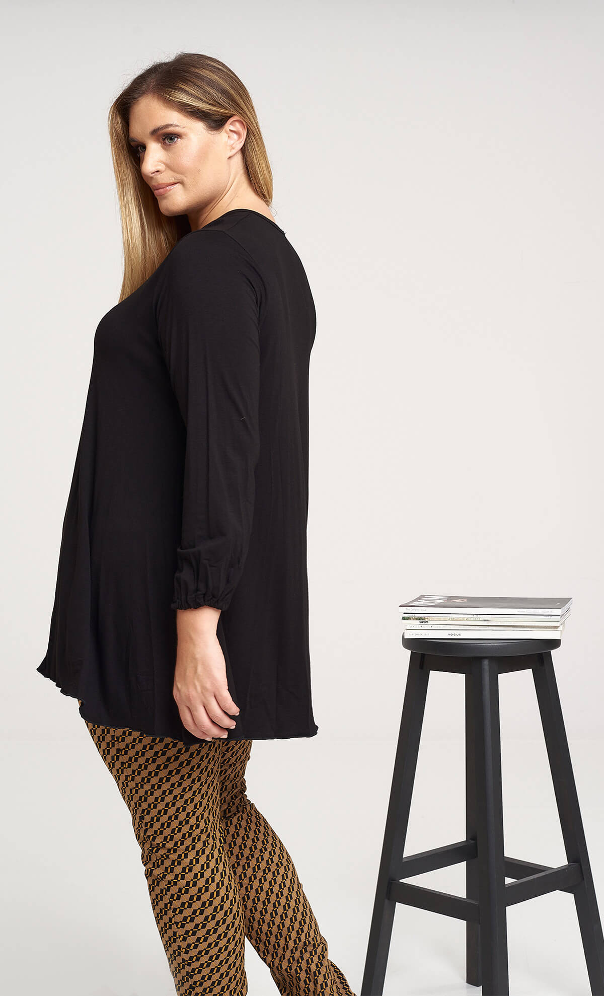 Μαύρη μπλούζα πουκαμίσα σε άνισο μήκος